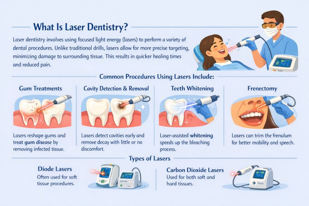 Laser dentistry is revolutionizing dental care, offering a more precise, less invasive alternative to traditional methods. As more people seek quicker, more comfortable treatments, laser dentistry is quickly gaining popularity. Its ability to target specific areas with minimal discomfort makes it an appealing option for patients across Chicago. The city’s bustling community of professionals, parents, and busy individuals is turning to laser technology for its efficiency and effectiveness.